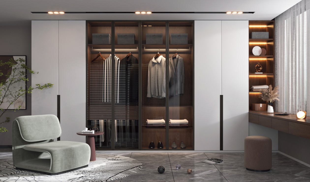 Lighting can redefine the closet experience. LED strip lights, motion sensors, and soft ambient fixtures highlight your wardrobe while creating a luxurious ambiance. Pair this with elegant accessories—glass display shelves for treasured items, jewelry trays for organization, or pull-out mirrors for convenience—to merge practicality with sophisticated style.