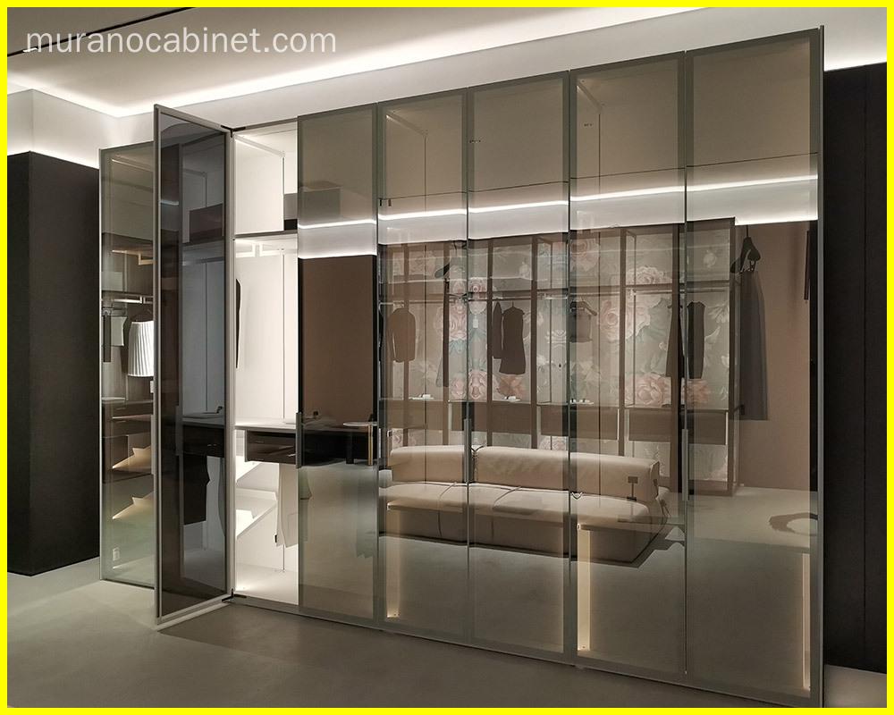 Glass and wood wardrobe cabinets elegantly blend functionality and style for bedrooms or dressing rooms. The wooden frames offer durable sophistication, while glass panels provide easy visibility of contents, simplifying organization.