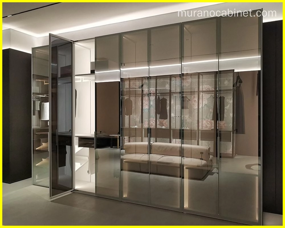 Glass and wood wardrobe cabinets elegantly blend functionality and style for bedrooms or dressing rooms. The wooden frames offer durable sophistication, while glass panels provide easy visibility of contents, simplifying organization.